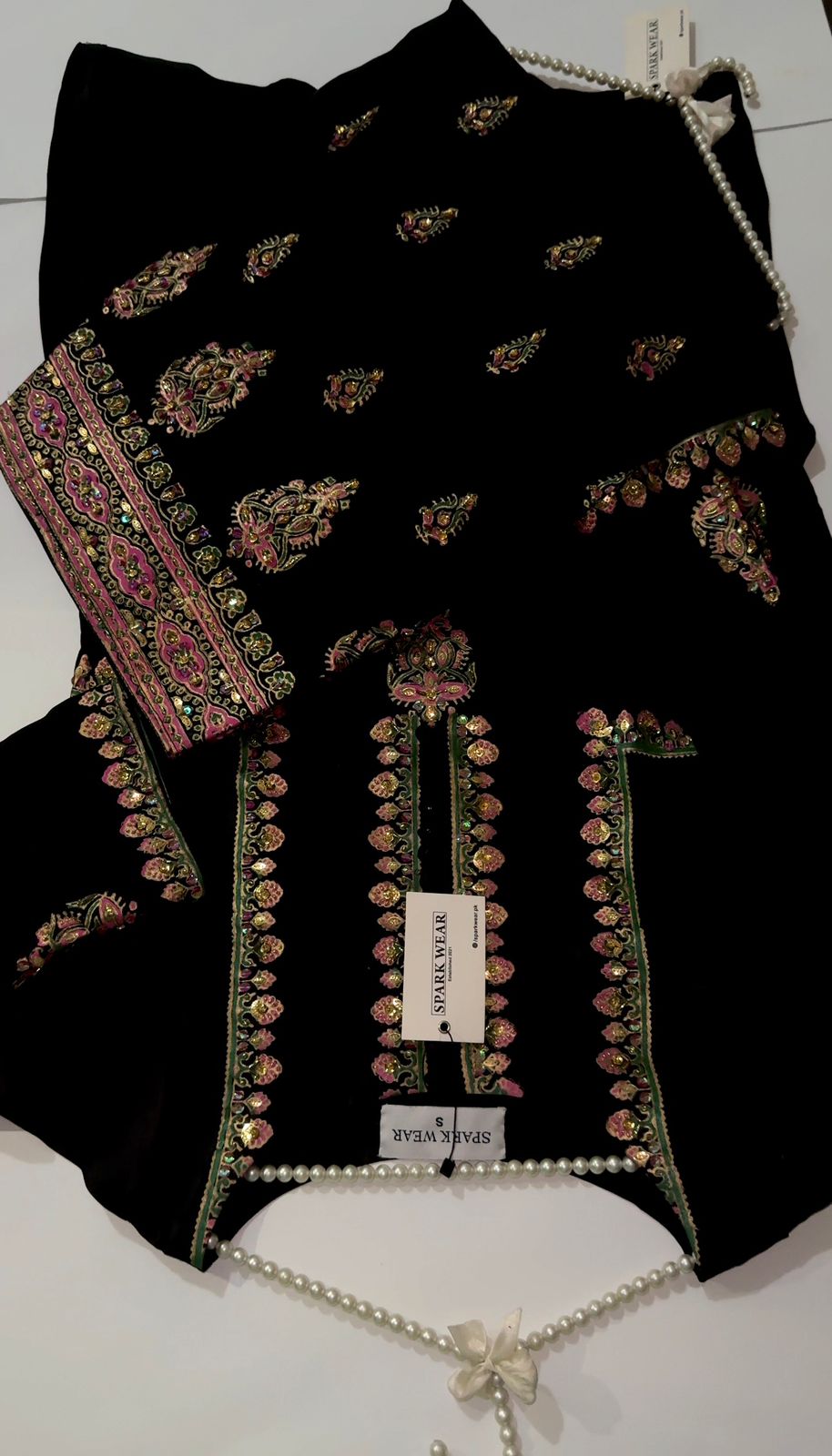 At Sparkwear, all our pieces are completely handmade nothing is glued or temporarily fixed. We use only original sequins and crystals, which shine in different colors. Every material is carefully hand needle stitched by skilled karigars with stitches so fine that they're nearly invisible to the naked eye, giving the illusion of embellishments seamlessly fused into the fabric yet every detail is entirely handcrafted ensuring long lasting beauty and quality making it expensive yet luxurious.